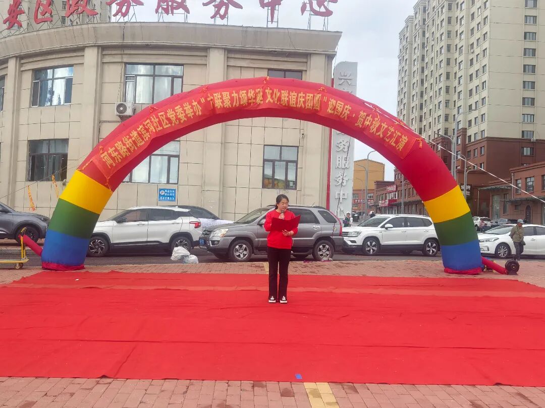 金秋送爽,丹桂飄香。9月25日上午,鶴崗市興安區河東路街道濱河社區黨委在濱河南廣場舉辦“六聯聚力頌華誕 文化聯誼慶團圓”迎國慶·賀中秋文藝匯演,邀請興建路派出所、興安路派出所、安民醫院、方正物業、泰華物業、榕福記食品有限公司6家共駐共建單位代表,與轄區黨員、居民歡聚一堂,共迎雙節。