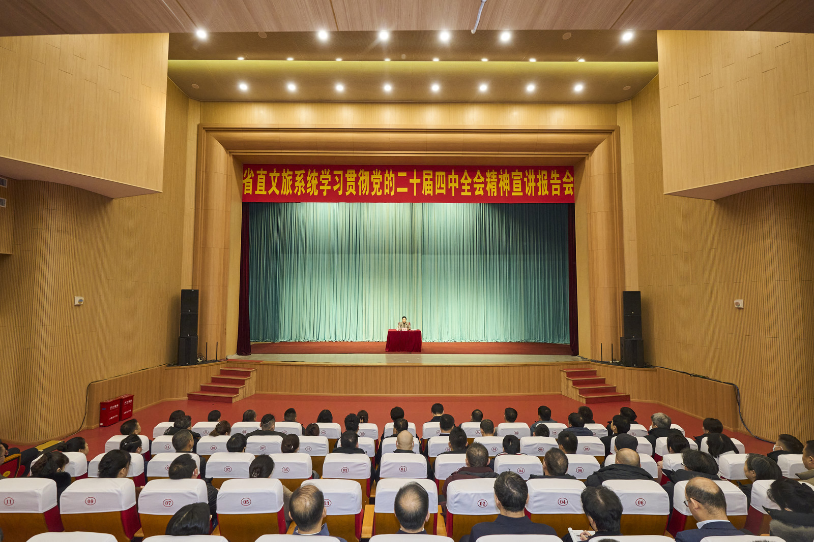 24日,學(xué)習(xí)貫徹黨的二十屆四中全會(huì)精神省委宣講團(tuán)報(bào)告會(huì)在省文旅廳舉行,省委宣講團(tuán)成員,省文旅廳黨組書記、廳長(zhǎng)何晶圍繞深刻領(lǐng)會(huì)黨的二十屆四中全會(huì)的重大意義、深刻領(lǐng)會(huì)習(xí)近平總書記在全會(huì)上的重要講話精神、深刻領(lǐng)會(huì)“十四五”時(shí)期我國發(fā)展取得的重大成就、深刻領(lǐng)會(huì)“十五五”時(shí)期經(jīng)濟(jì)社會(huì)發(fā)展的戰(zhàn)略任務(wù)和重大舉措、全面貫徹黨中央決策部署、按照省委要求統(tǒng)籌推進(jìn)各項(xiàng)目標(biāo)任務(wù)落實(shí)、以釘釘子精神確保落地見效等十個(gè)方面進(jìn)行全面宣講和深入闡釋。會(huì)議強(qiáng)調(diào),省直文旅系統(tǒng)要深刻領(lǐng)會(huì)全會(huì)取得的重大成果、作出的重大部署,更加緊密地團(tuán)結(jié)在以習(xí)近平同志為核心的黨中央周圍,牢記囑托、感恩奮進(jìn),重振雄風(fēng)、再創(chuàng)佳績(jī),為不斷開創(chuàng)中國式現(xiàn)代化龍江實(shí)踐新局面,為基本實(shí)現(xiàn)社會(huì)主義現(xiàn)代化、推進(jìn)強(qiáng)國復(fù)興偉業(yè)作出新貢獻(xiàn)。